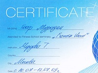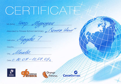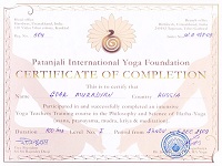- 2006-2008 – Аштанга-Йога Центр (Москва), Сертифицированный курс по подготовке инструкторов по йоге, международный сертификат тренера;